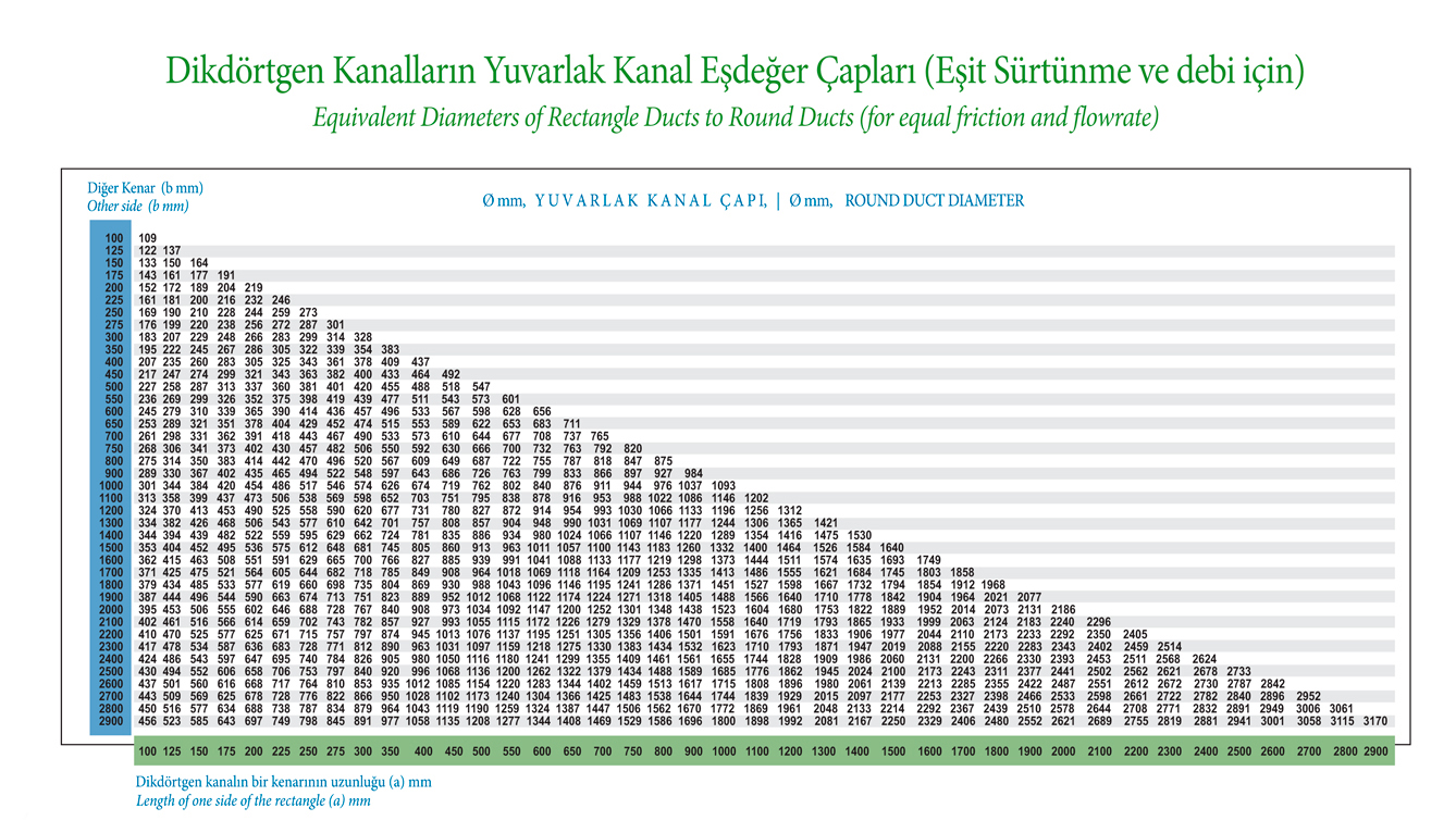 Dikdörtgen Kanalların Yuvarlak Kanal Eşdeğer Çapları