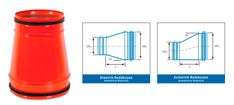 Yuvarlak havalandırma kanallarında hattın ebat değişiminde kullanılır. Özel olarak yapılmış makinalarda imal edilir. Galvanizli, paslanmaz veya alüminyum saçtan plazmada kesilerek çıkan parçalar makinalarla şekillendirme yapılarak birbirlerine kenetlenir.