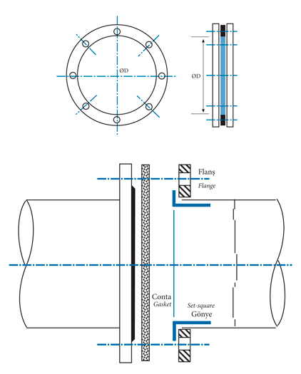 Yuvarlak kanal flanşları; kanal birleştirme elemanı olarak kullanılır. Aşağıda detayı verilen flanş elemanı daha çok iç yüzeydeki çıkıntıların (iç içe geçmelerin) sorun olduğu toz veya talaş toplama hatlarında kullanılır. Ağız ağıza sıkılan kanalların arasında conta kullanılır ve flanş üzerindeki deliklerden iki yuvarlak ağız birbirine sıkılırken conta arada ezilir.